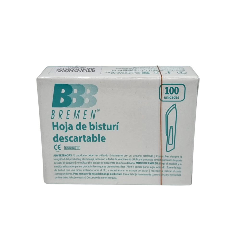 - Caracteristicas: Hojas de acero al carbono esterilizadas por radiacion gamma.