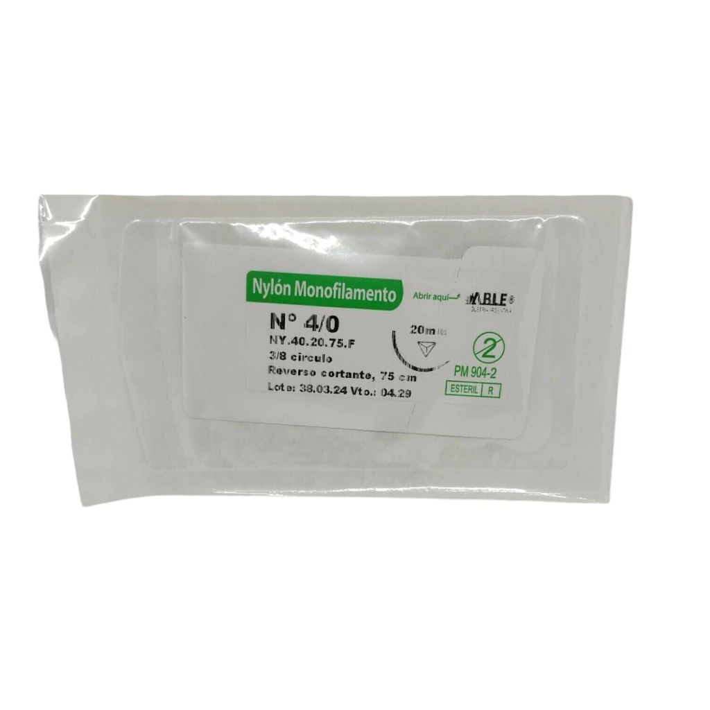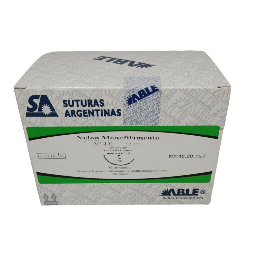 SUTURA NYLON MONOFILAMENTO ABLE Nº 4/0 CON AGUJA DE 20 MM, 3/8 CÍRCULO, REVERSO CORTANTE Y HEBRA DE 75 CM