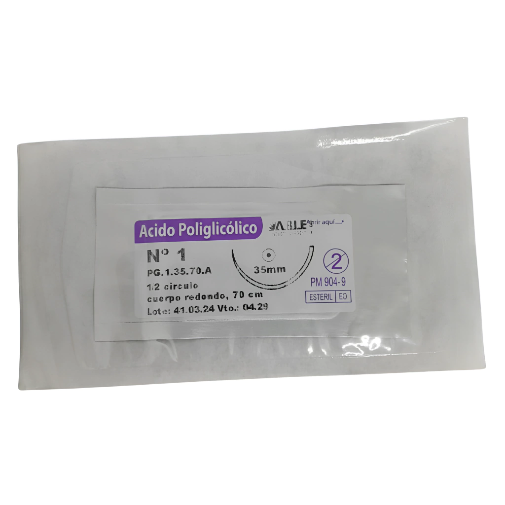SUTURA VICRYL PGA ÁCIDO POLIGLICÓLICO ABLE Nº 1 CON AGUJA DE 35 MM, 1/2 CÍRCULO, CUERPO REDONDO Y HEBRA DE 70 CM