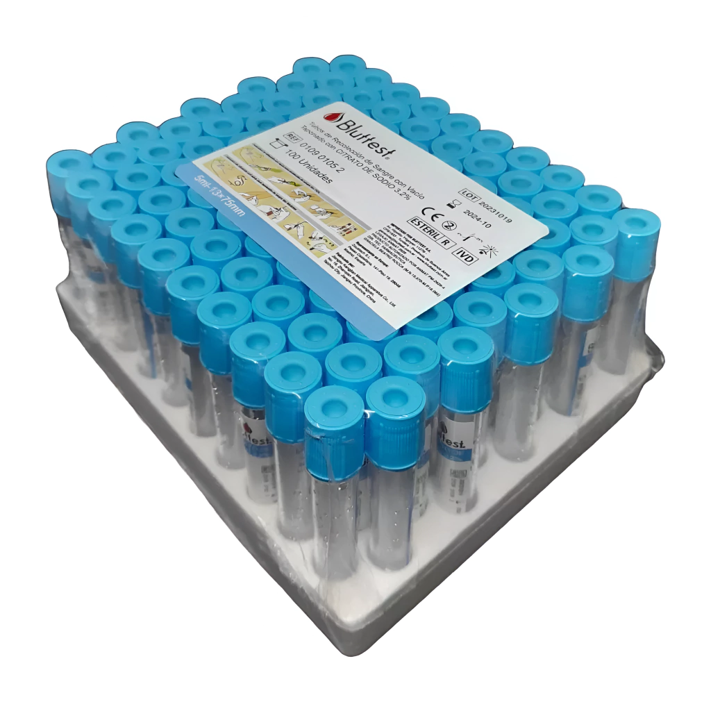Tubos Bluttest para recolección de sangre de Citrato de Sodio 3.2% (5ml 13x75mm) al vacío.